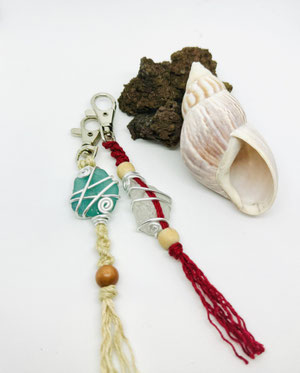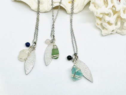 ビーチグラスをクラフトワイヤーとヘンプ(麻紐)で固定し、